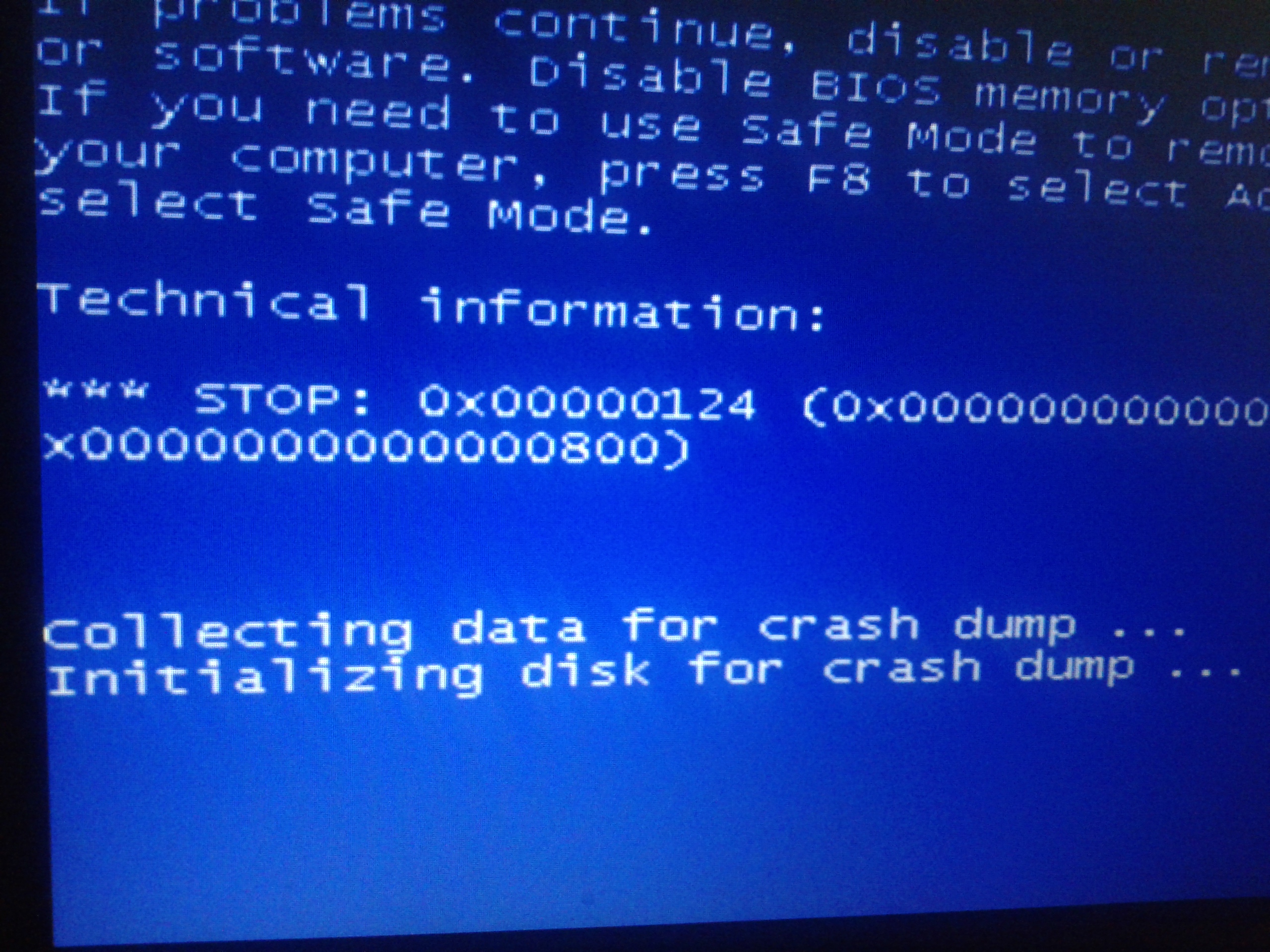 Je tam napsaný : collecting data for crash dump......