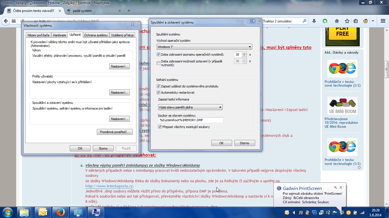 Prostě složka Windows\Minidump ani Windows\Memory není k dohledání :(