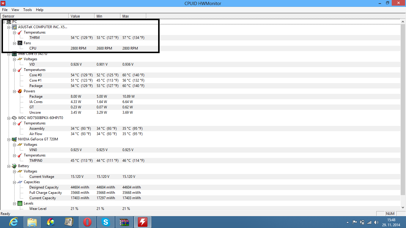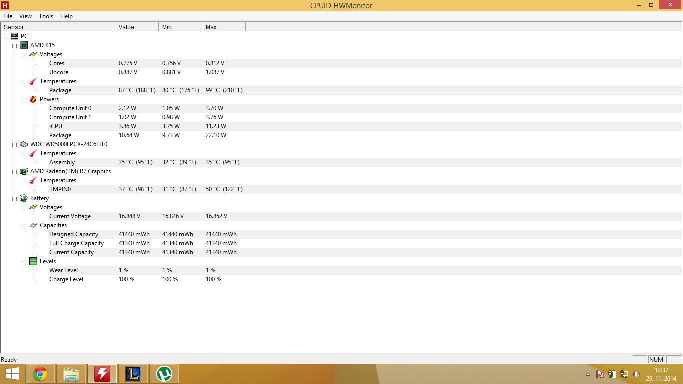 Zde přikládám teploty. Při zapnutí pc se ukazuje hned 80C. Ukazuje to o 50C více, než by mělo.
