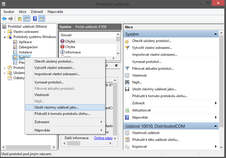 mám problé s bodom B 2. ked kliknem pravým na Protokoly systému Windows mám tam iba tieto možnosti na výber: