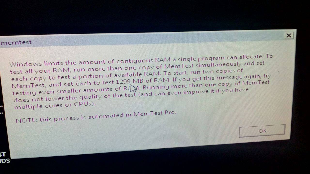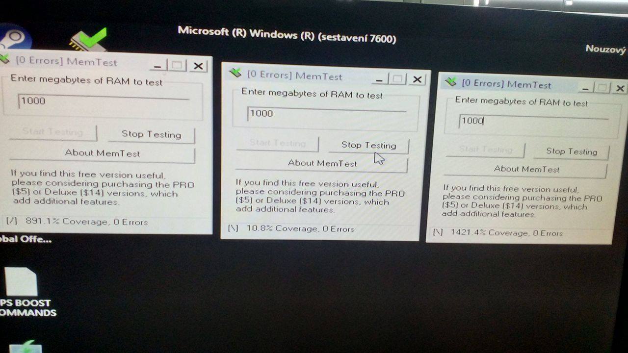 Vzdyt je to tam napsane - staci si to precist. Hlavni problem je v tom, ze Memtest se nesmi spoustet z Windows, protoze Windows pouzivaji a tim padem blokuji nekolik GB RAM, ktere nelze otestovat.