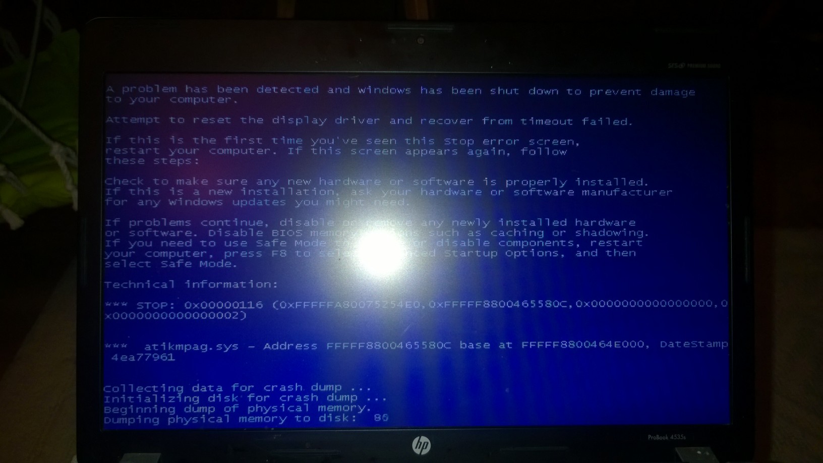 Nelze jej nastartovat, dostanu se třebas i k ,,vítejte" ale pak mora smrt viz. obrazek a nový restart.