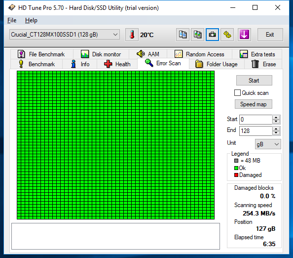 HD Tune Pro: Crucial_CT128MX100SSD1 Error Scan