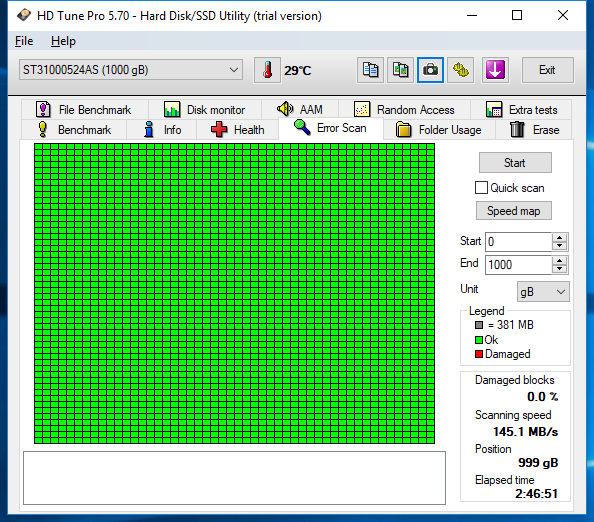 Sosni treba program HD Tune a dej pomaly test. Vsechna pole musi byt zelene.