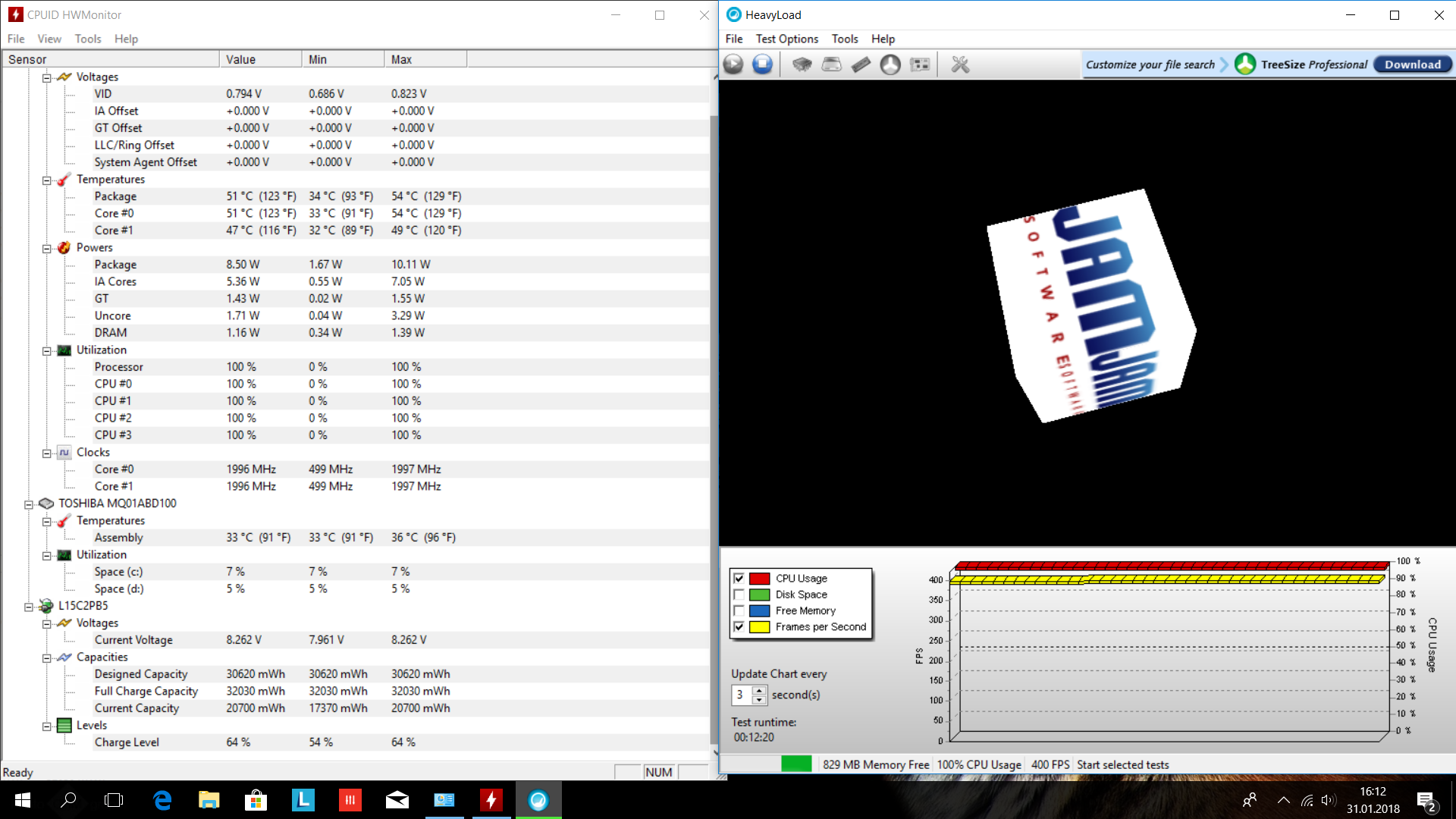 f) Screen HWmonitoru při zátěži v příloze.