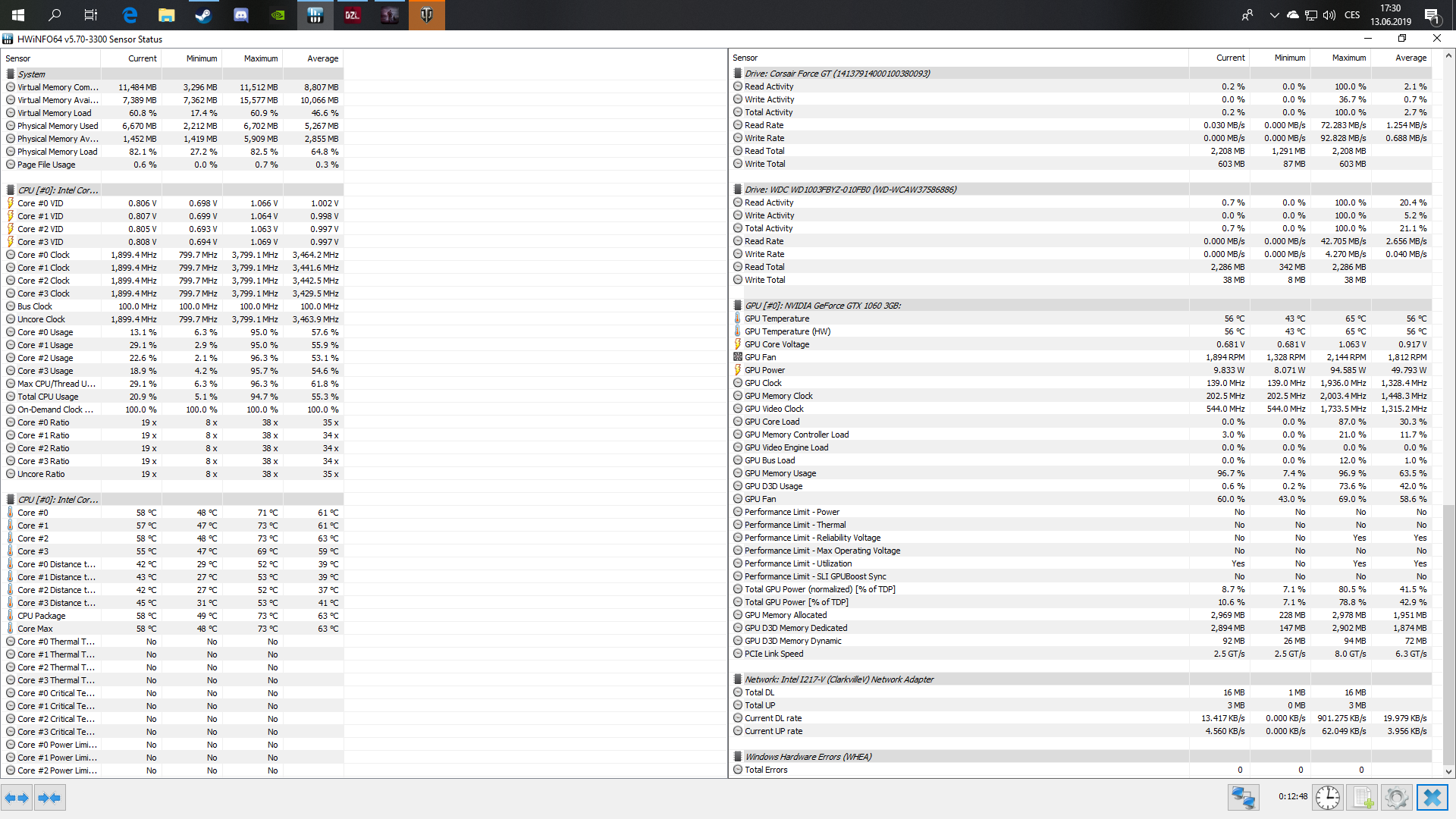 HWiNFO pak rozklikni dole šipkama, aby bylo v jednom screenu vidět všechno a tažítkama to kdyžtak inteligentně posuň. Při startu zaškrtni jen senzory nebo jak to je tam napsaný.
