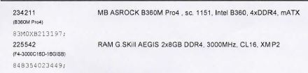Základní Deska ASRock B360M Pro 4 (provedl jsem i aktualizaci Biosu na v. 4.20) také to nepomohlo. Provedl jsem standardní test RAM (dle postupu: https://www.pcporadna.net/hardware/test ... ameti-ram/ - výsledek bez chyby. Nevím zda standardní dostačuje? ) Dohledal jsem podle návodu jak otevřít soubor C:Windows/Minidump/xy.dmp - výsledek viz příloha testový soubor.