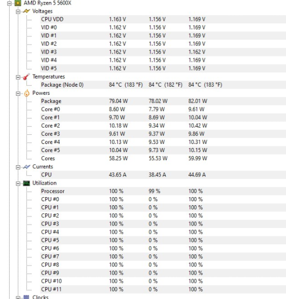 screen teplot a vytížení je z testu viz bod f. informace o teplotách komponent v zátěži