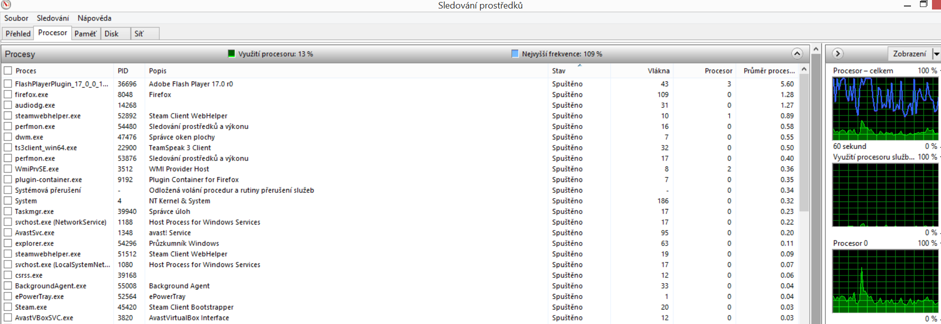 Tak dej zatížení z aktuálního prohlížeče a na čem to jede.Jestli flash nebo HTML5.