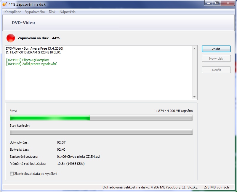 Děkuji všem za rady a po delším zkoumání jsem to konečně vyřešil,nainstaloval jsem si nero a tam už jsem si stím pohrál a mám to.Šlape to už jak hodiny.Ale mám ještě jeden dotaz můj bratr si nahrál serial mash a jemu v dvd sencor se spustí jen zvuk a mě v téže značce to přehraje vše a vpohodě.Můžete mi poradit .děkuji