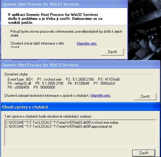 Hlasi mi to tyto označené chyby: EventType: BEX P1:scchost.exe P2:5.1.2600.2180 P3:41107ed6