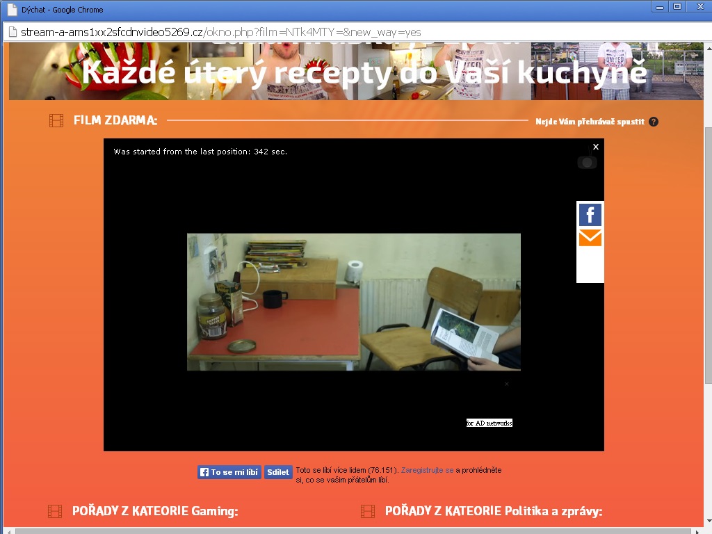 Ano jedná se o chrome. Zkoušel jsem aktualizovat chrome, flash player. Dokonce jsem to zkoušel i v prohlížeči Opera. Stále stejné.