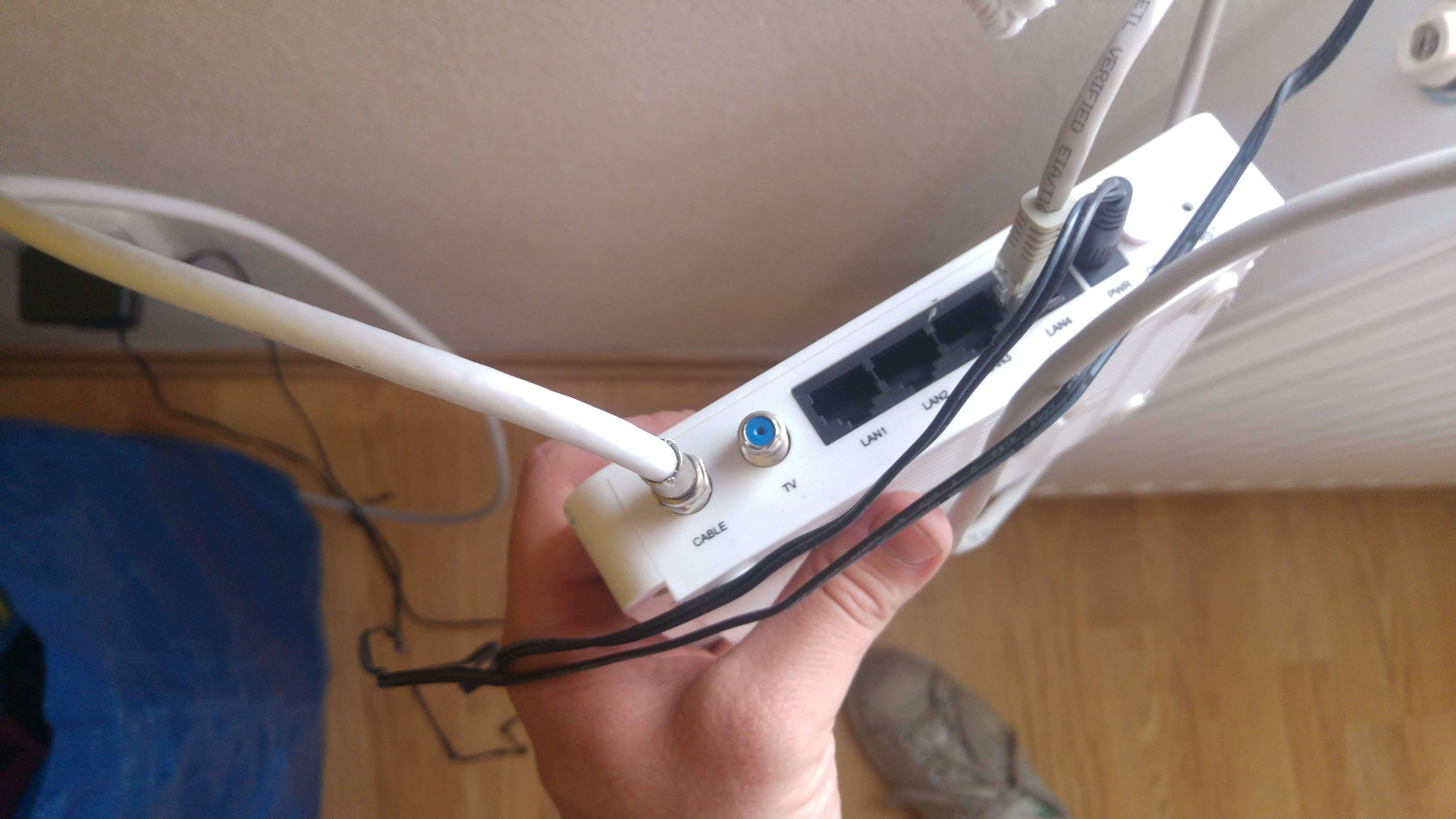 Podle fotky je ten koaxiál připojený, potřebuje jen šňůru do modemu a tv.