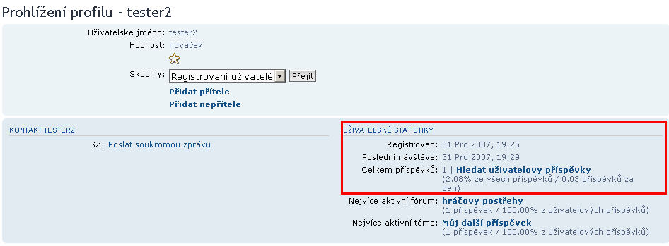 Teď k tvému dotazu: tohle momentálně fórum nezobrazuje, ale phpbb 3.0 už ano a to v profilu daného uživatele - viz. přiložený obrázek. Proto prosím vydrž do přechodu na phpbb 3.0, poté to min. v profilu uživatele bude možné vidět.
