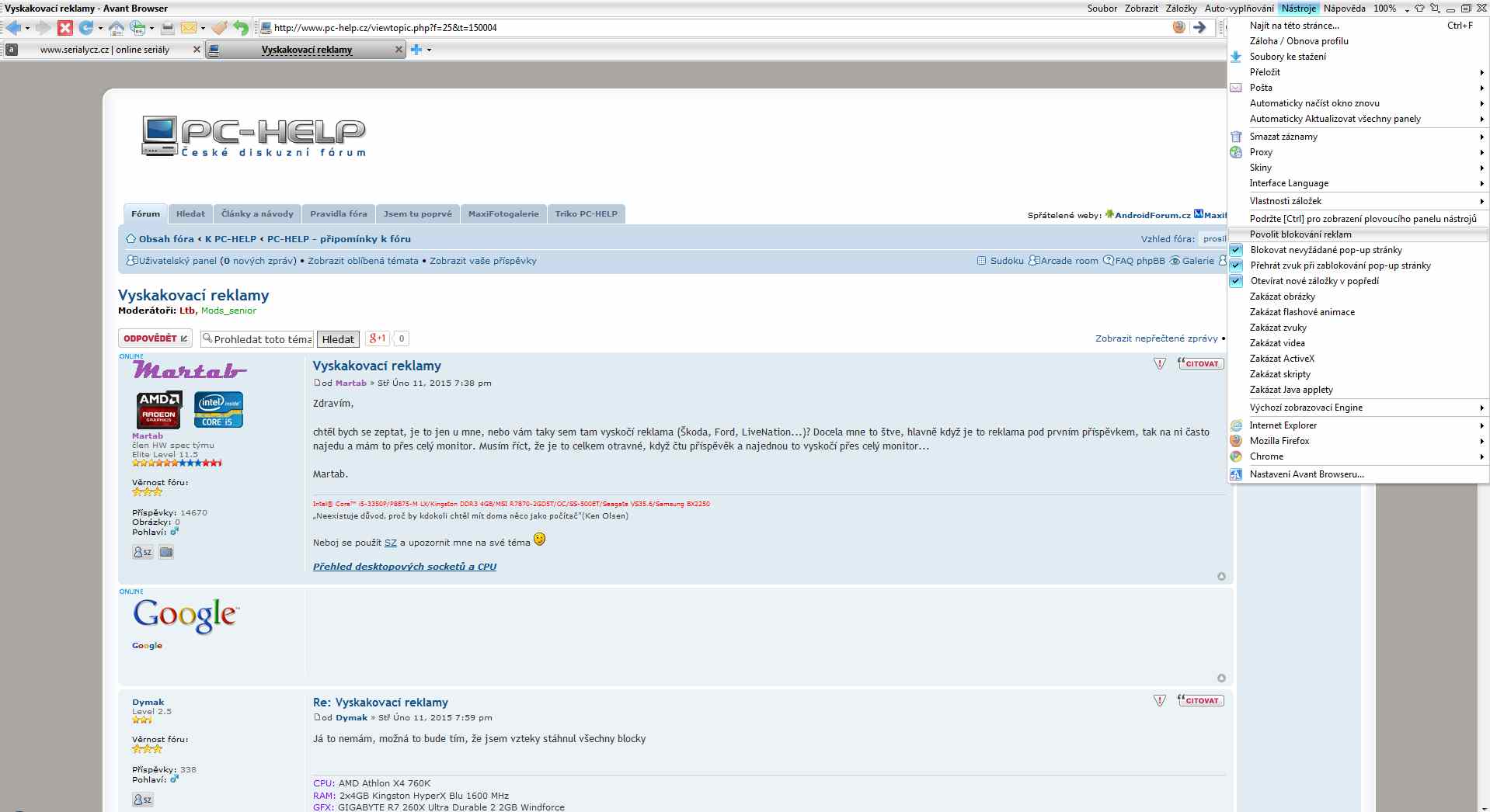 Re: Vyskakovací reklamy