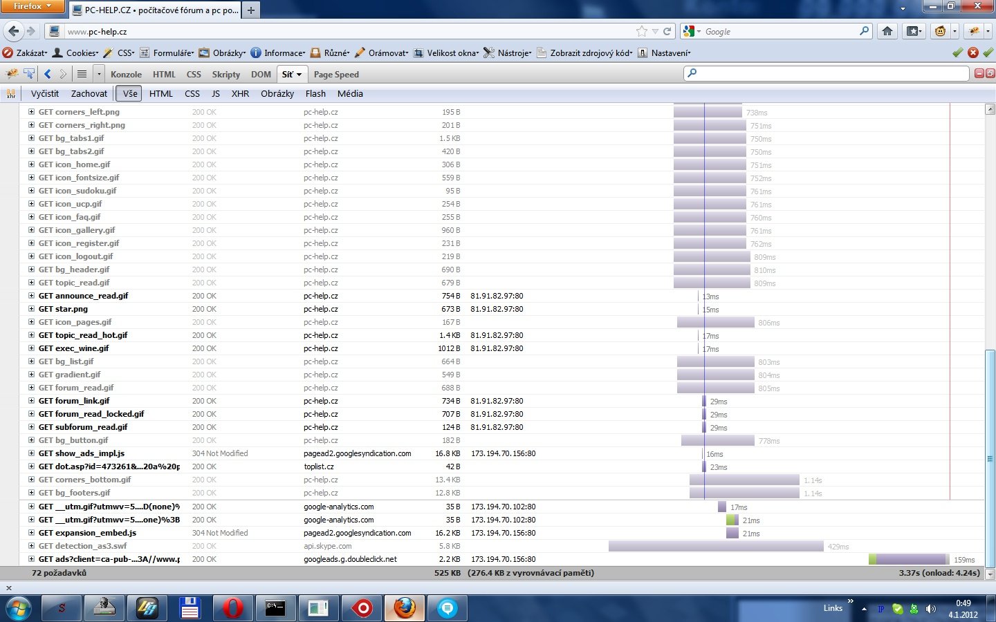 takhle nějak vypadá konec seznamu připojení ve FireFoxu (plugin FireBug)