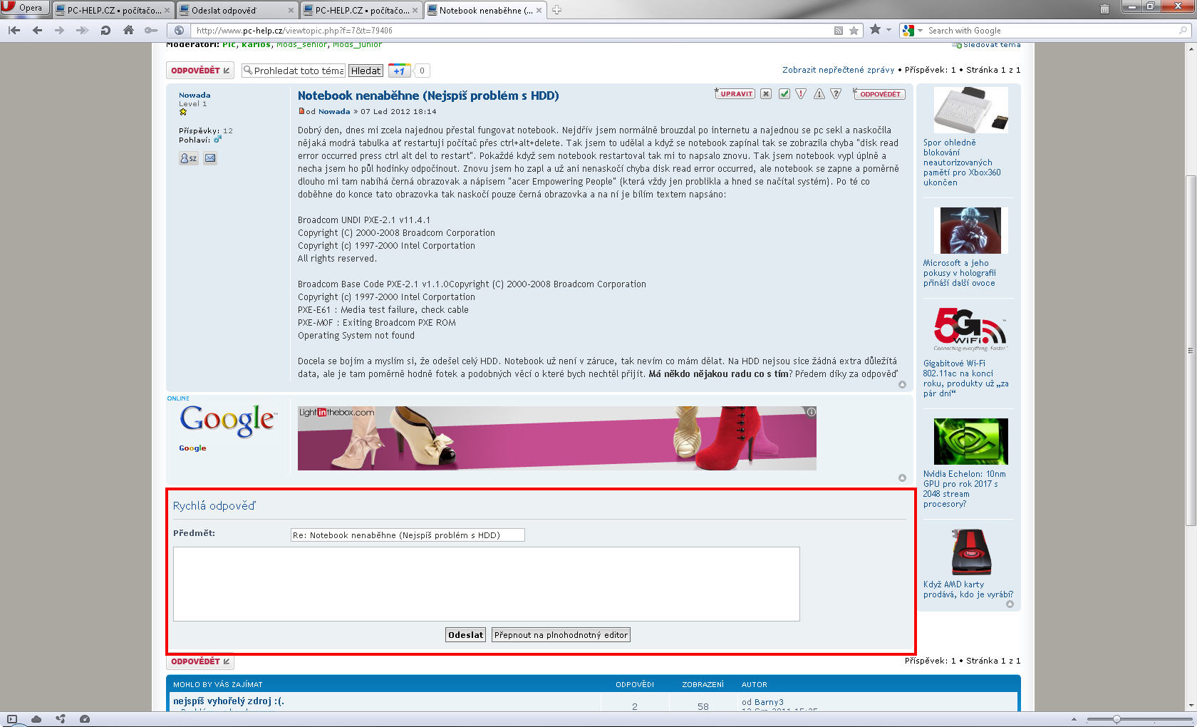 zobrazení rychlé odpovědi je skvělý nápad, protože se občas neukázalo to tlačítko na zobrazení textarea :-)