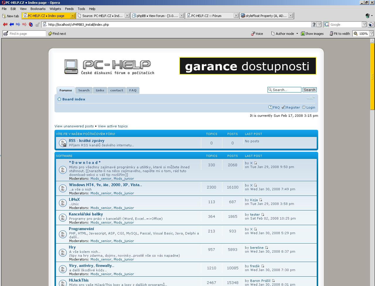 Styl pro fórum ve verzi phpBB 3.0 je na 90% hotový, ukázku přikládám (viz. níže přiložený soubor). Jedná se o mírně upravený "prosilver". Styl bude fixní, vyladěný na rozlišení 1024x768, následovat ho bude druhý fixní pro rozlišení 1280x1024.