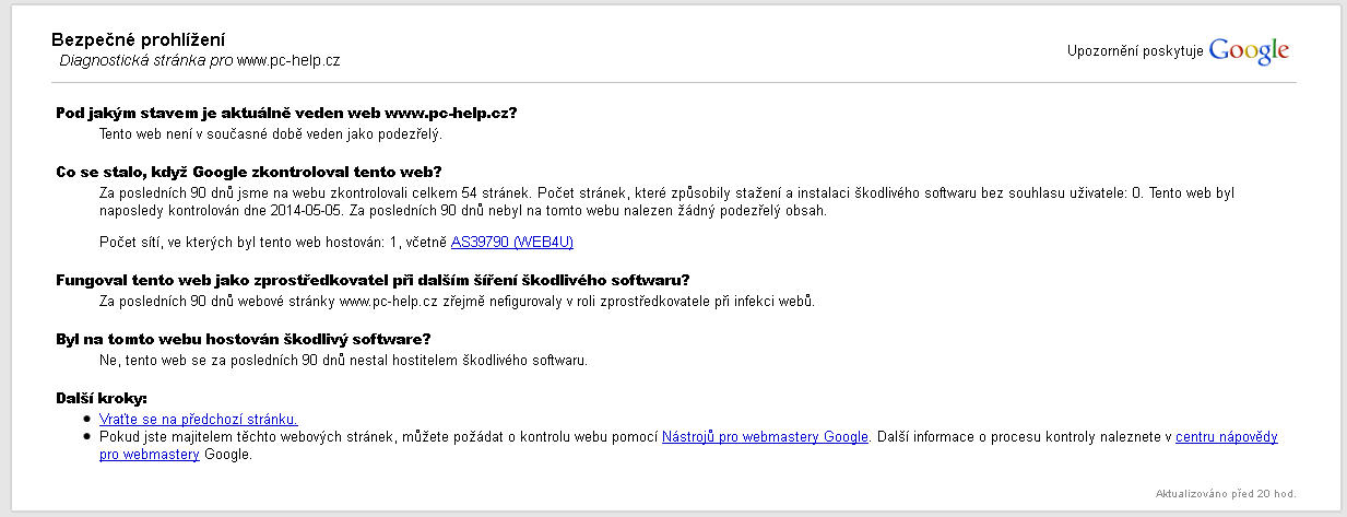Není náhodou reálné, aby byla stránka/y PC-helpu infiltrovány až přímo v mém PC? A teprve poté zablokován přístup? Nasvědčovalo by tomu i to, že se stránky PC-help začnou otevírat, objeví se na okamžik otevřená stránka a pak tam najednou skočí ta informace o malwaru.