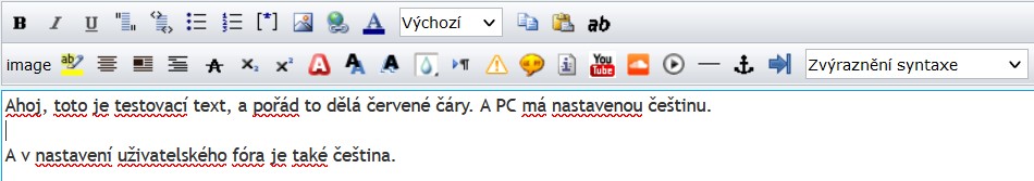 Ahoj, toto je testovací text, a pořád to dělá červené čáry. A PC má nastavenou češtinu.