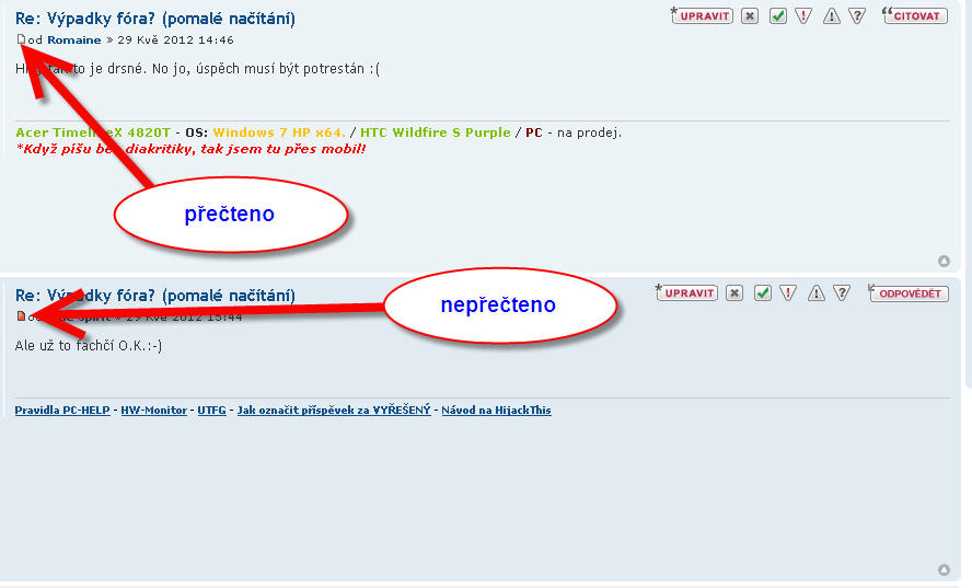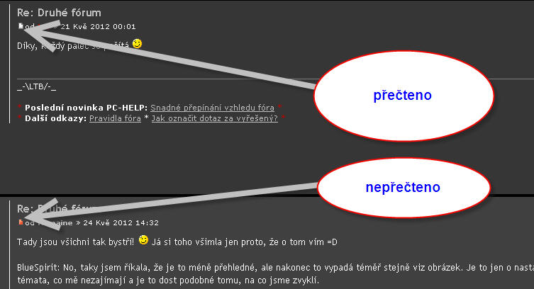 Pokud kliknu na nějaký topic, ve kterém je více nových příspěvků, které sem ještě nečetl, tak musím zkoumat, které z nich to jsou. Některé vzhledy to mají rozlišeno viz. příloha, ale tady sem si žádného rozdílu nevšiml.