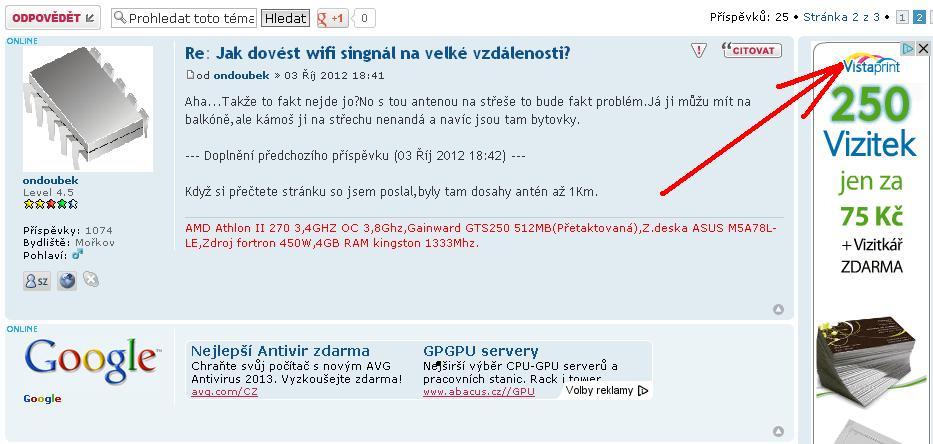 Chápu že fórum musí z něčeho žít a částečně ho živí i reklama, ale dneska jsem se doslova lekl. VistaPrint? To je spamovací robot kterého jsem se pracně z e-mailů zbavoval. Nebyl snad den, abych neměl několik nabídek na vizitky za 50,-, 70,. apod. a k tomu razítko zdarma.