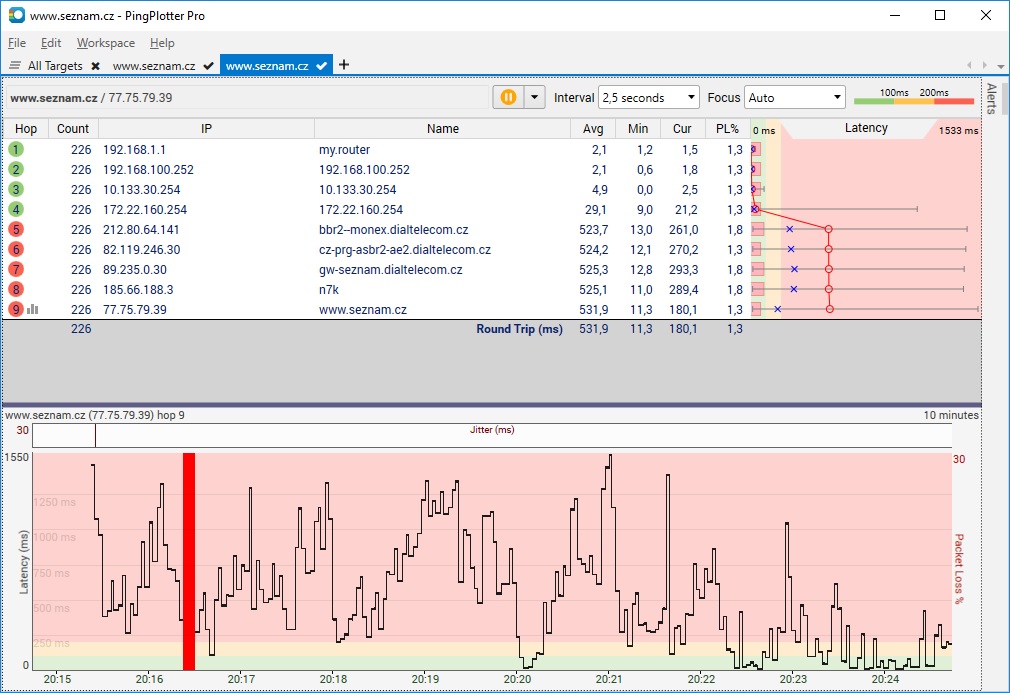 pomalu měsíc mám velký problém s internetem. Pravidelně při večerních hodinách, cca od 20:00 se internet zpomalí, má příšerný ping...i obyčejné načítání stránek je někdy problém. Přes den to bývá v pohodě (kromě dneška, to občas třeba na 2 minuty úplně vypadlo, ping byl ale dobrý), večer vždy nepoužitelný. Mám známou u poskytovatele, která tomu nerozumí, jenom mě tlumočí, popohání poskytovatele. Dle slov poskytovatele nic nikde vidět není (jak u mě, tak asi i v jejich síti). Měli mě údajně přes víkend napíchnutého na nějaký sledovací graf. Po jejich víkendovém monitorování šlapalo od pondělí vše v pohodě, až na dnešek, kdy celý den internet vypadával a teď je momentálně skoro nepoužitelný. Problémy mám na všech zařízeních připojených k síti. Zkoušel jsem i odpojit přívod internetu z routeru a zapojit přímo z příjmací antény kabel rovnou do PC, beze změny.