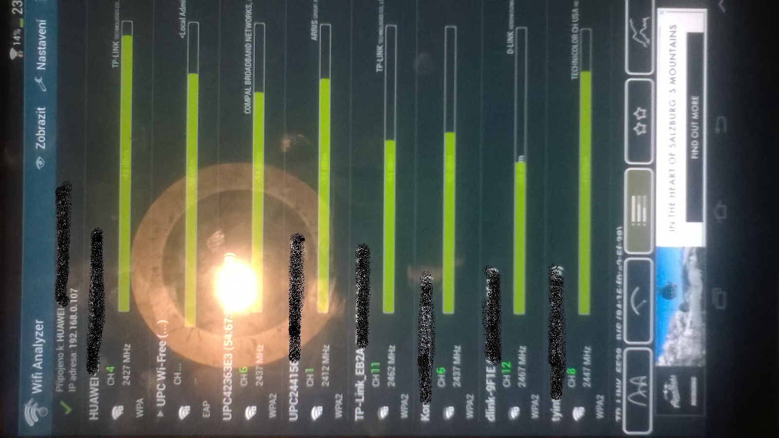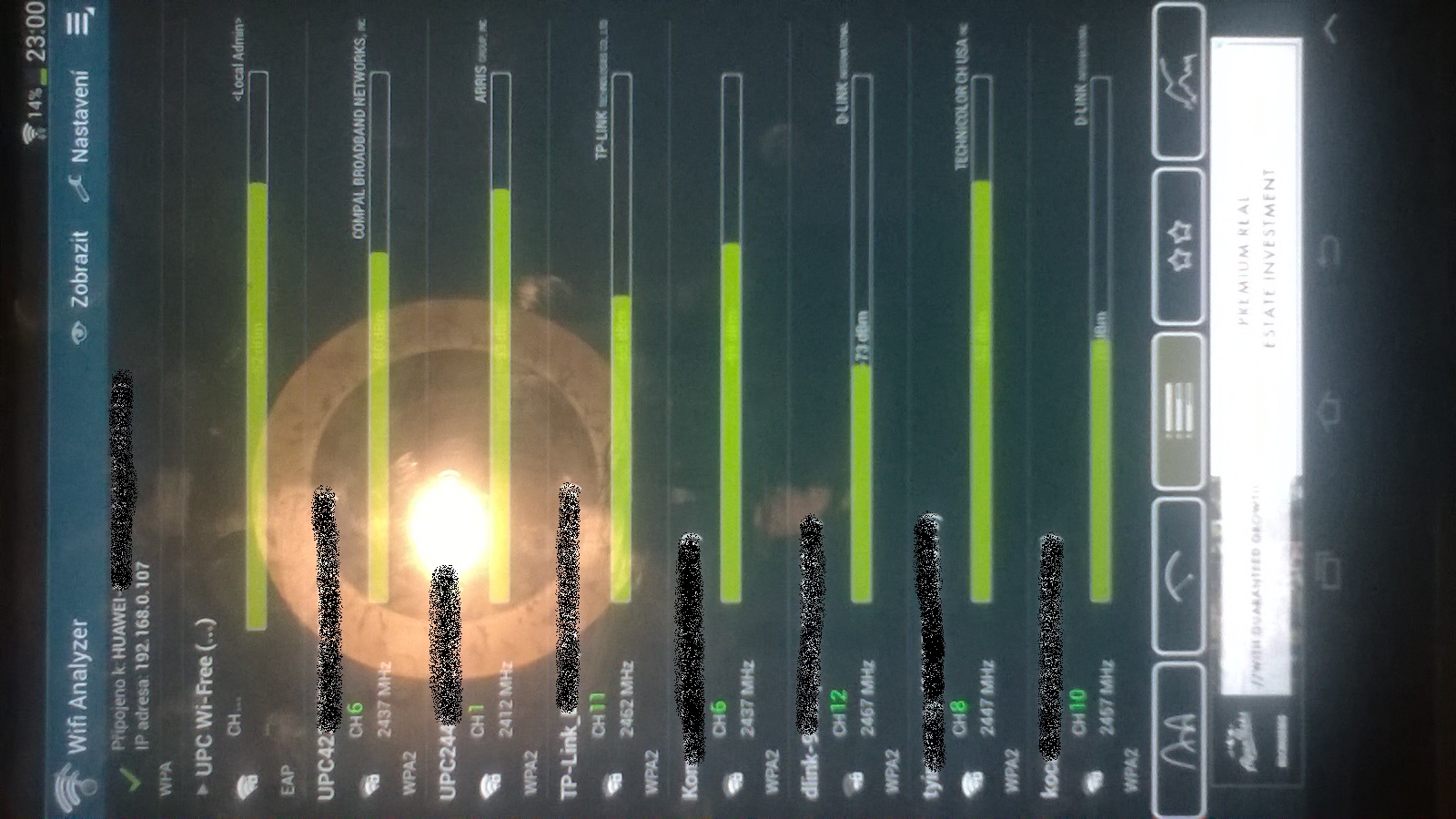 wifi siti okolo a dat to na kanel, ktery to ukaze ze je nejmene zaruseny.
