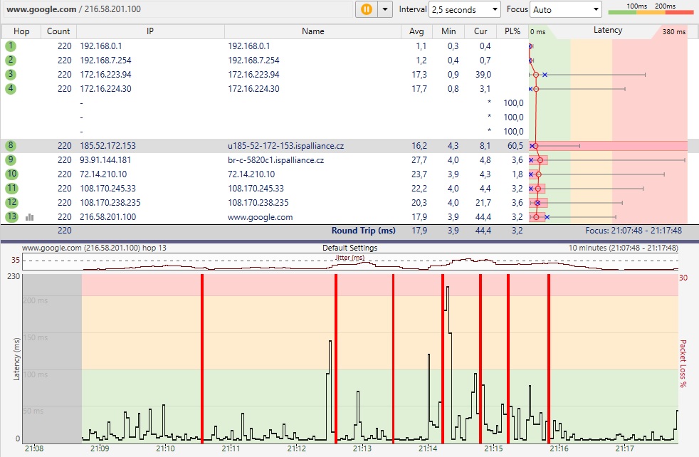 Načítání stránek,pouštění videí či streamů není problém. Ten nastává až tehdy když si chci zahrát nějakou online hru. V podstatě permanentně, až na nějakou vyjímku mám strašný packet loss.