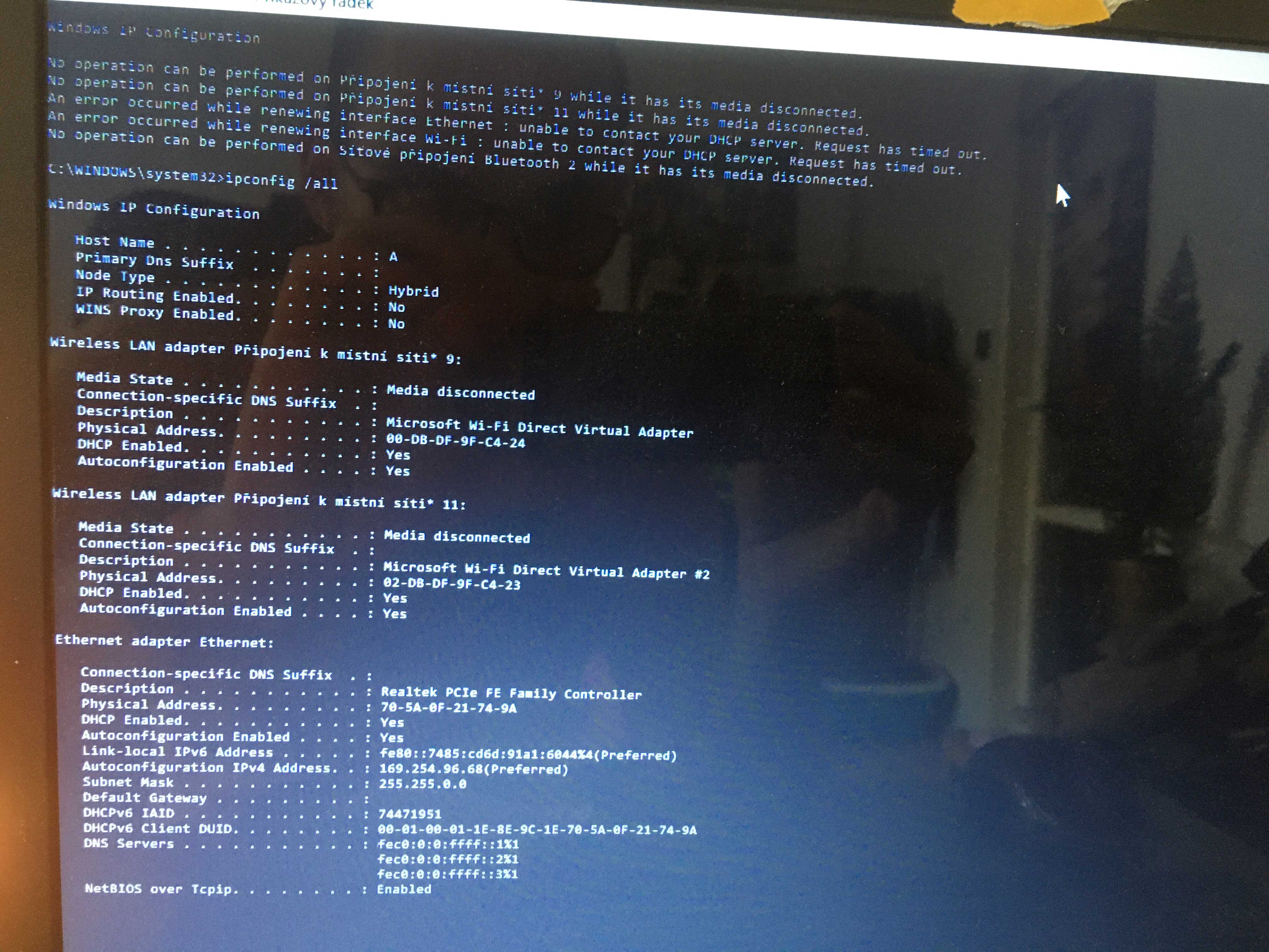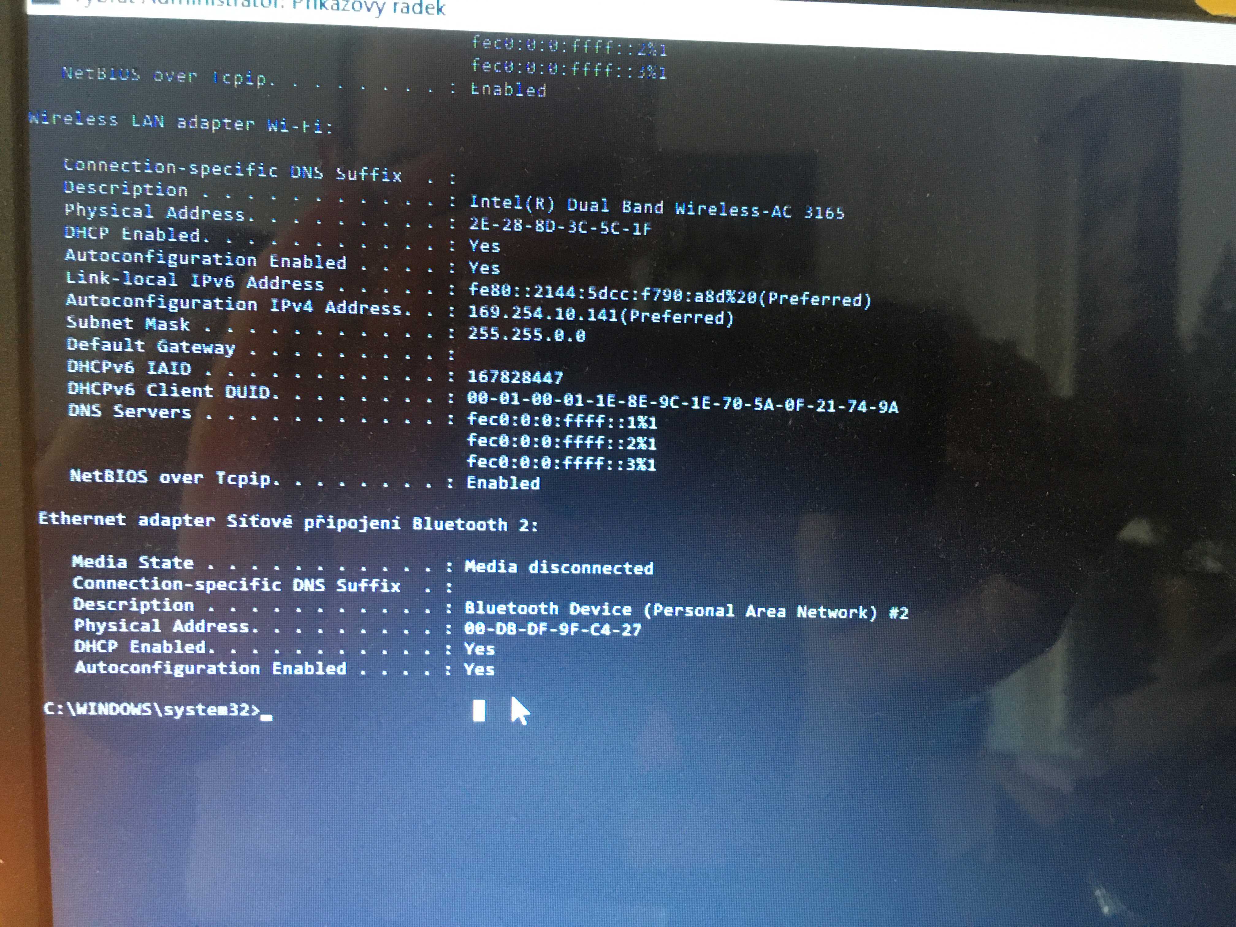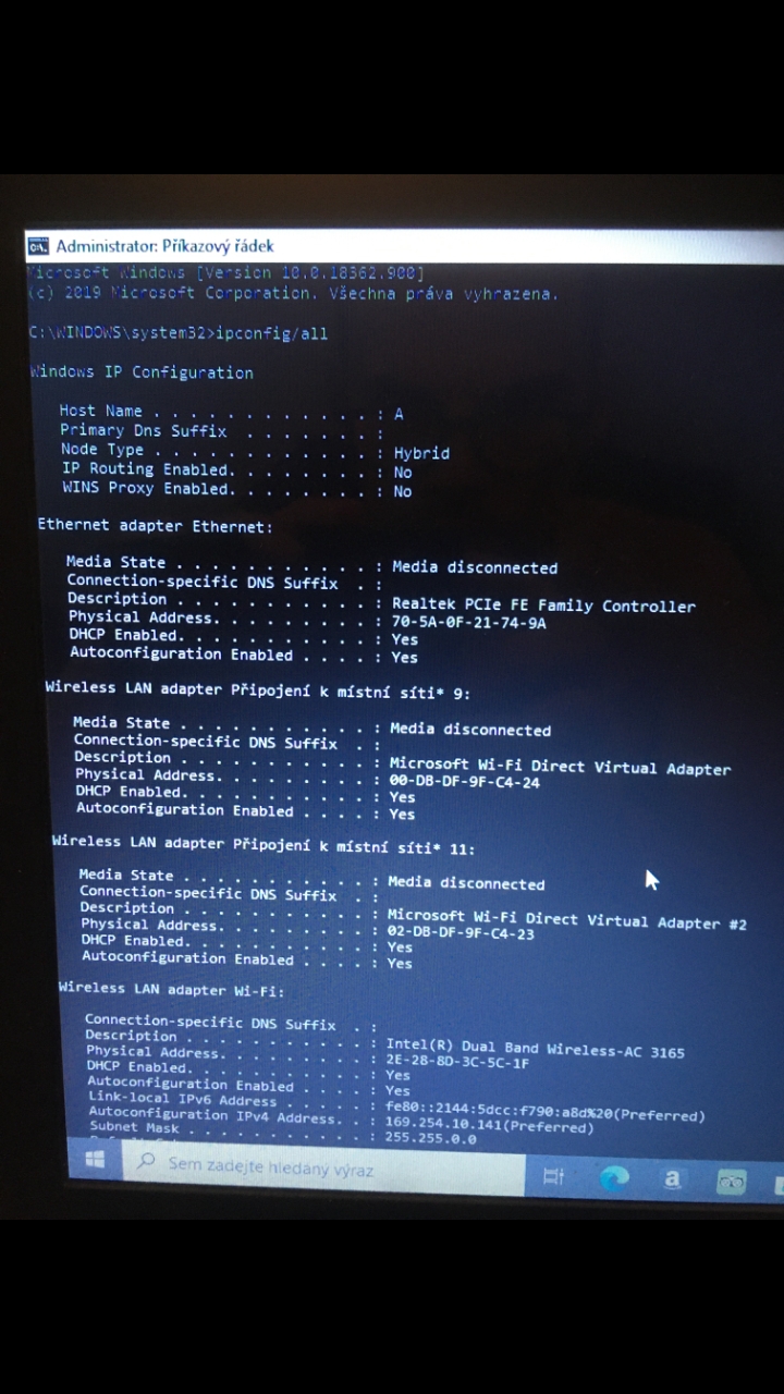 Dále sem dej ipconfig -all nějakého zařízení, které funguje.