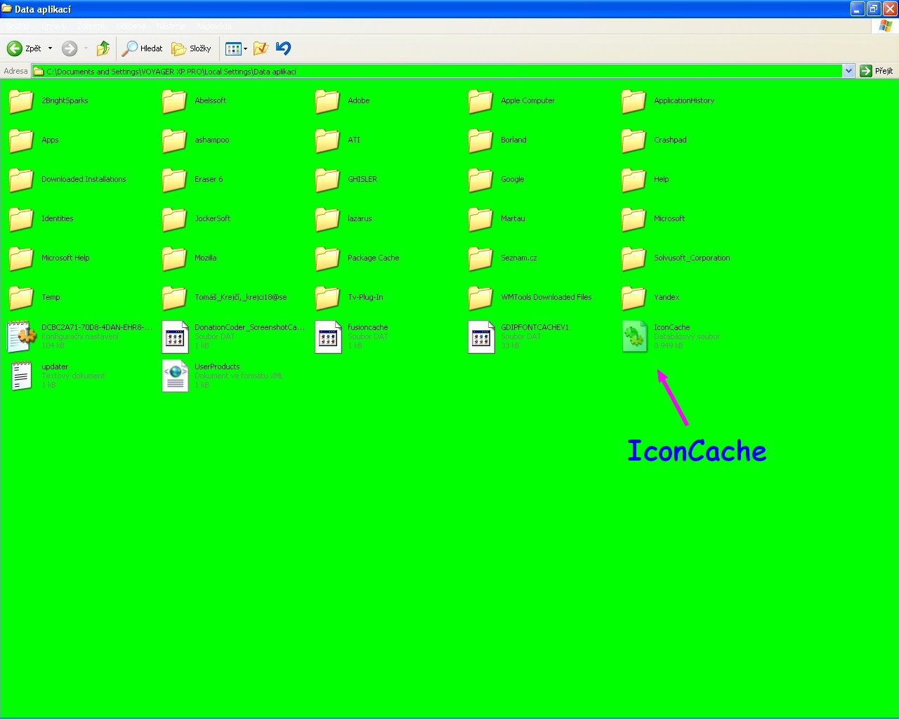 1. Zkus vymazat icon cache: smaž soubor C:\Documents and Settings\Tvůj Účet\Local Settings\Application Data\Iconcache.db