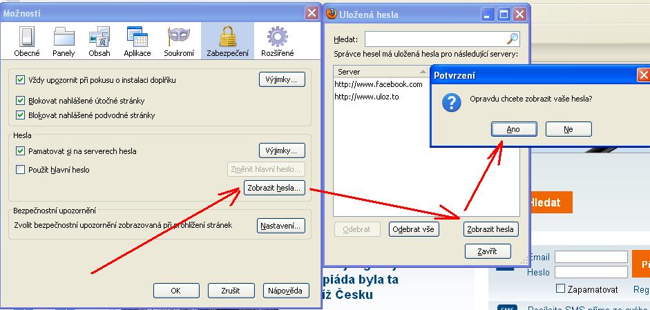 No, já jak si dám Nástroje, Možnosti, Zabezpečení, Zobrazit hesla, tak tam mám jen jedno uložený, a to to špatný.... nebo já nevim, kam by sem se měla podívat... Díky