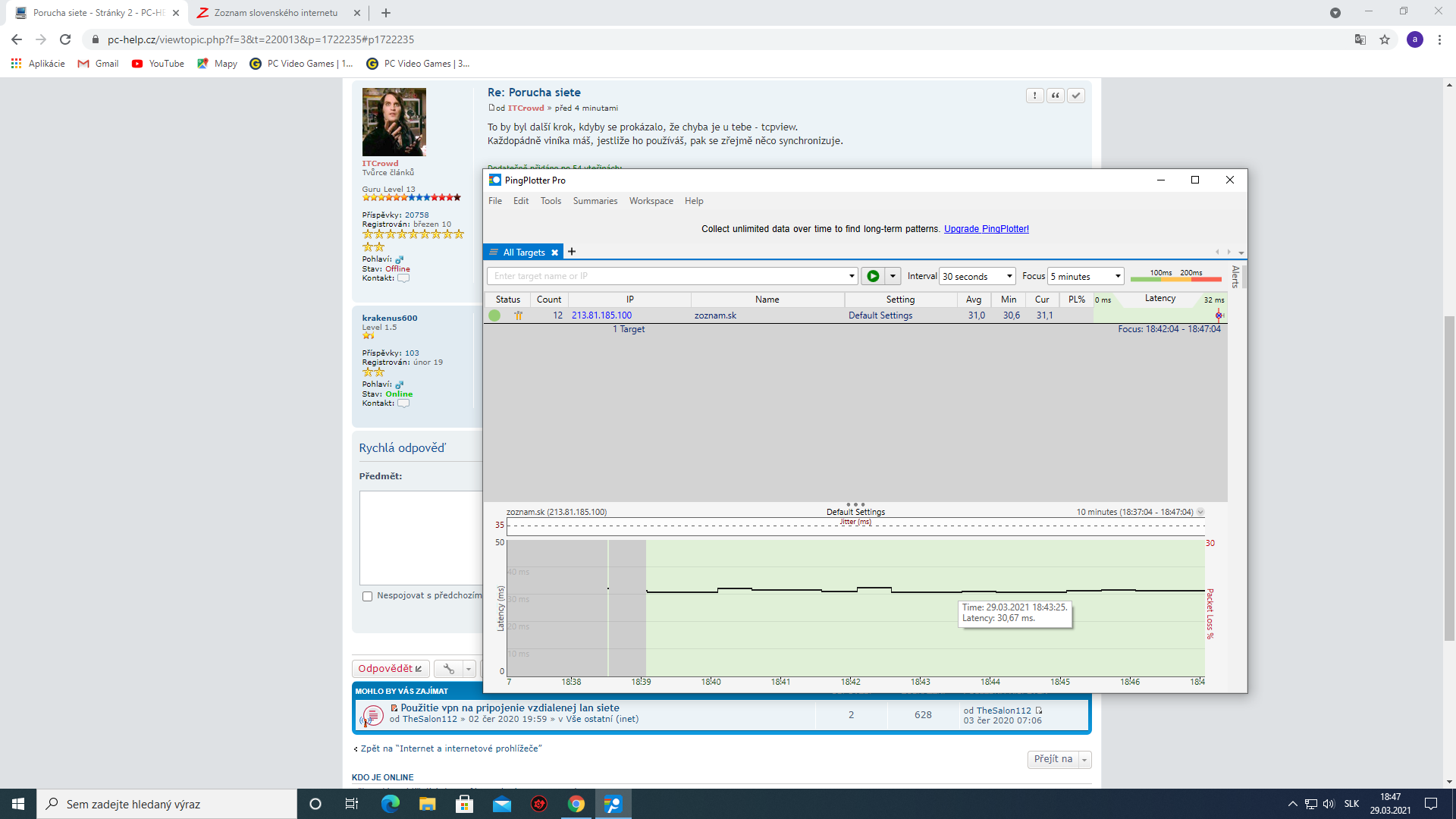 To by byl další krok, kdyby se prokázalo, že chyba je u tebe - tcpview.