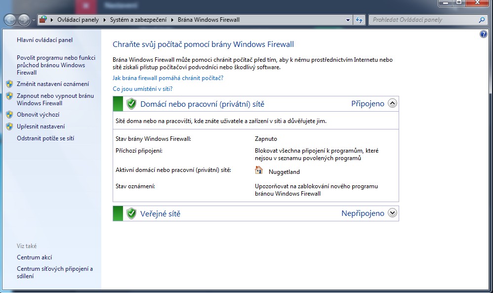 Takto to vypadá, když vyhledám ten firewall, snad to k něčemu bude.
