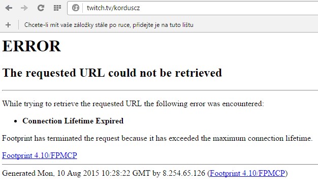 při načítání některých webových stránek (prozatím se mi to stalo u http://www.twitch.tv/ a www.upc.cz/) mi Chrome (i Firefox) vyhodí hlášku ERR_CONNECTION_TIMED_OUT a stránka nenačte. Zkusil jsem měnit DNS servery na 8.8.8.8 a 8.8.4.4. ale žádná změna, taky jsem vypl firewall jak v PC, tak u routeru. Aktualizoval jsem i firmware routeru a taky žádný účinek. Taktéž to neblokuje antivir.