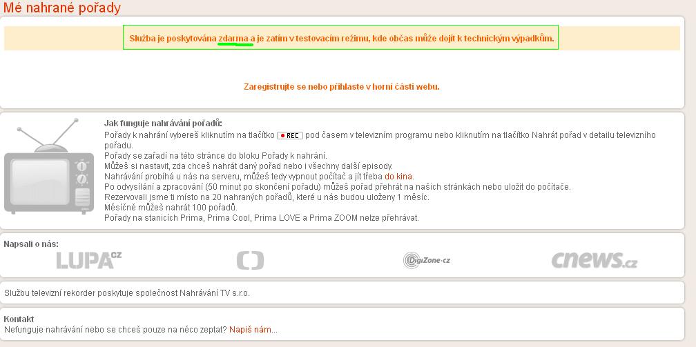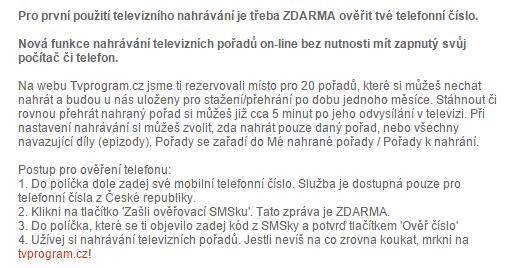Vybrané programy ti to nahrává do "tvé" složky na jejich serveru a máš možnost je po přihlášení sledovat na jejich stránkách. Nevím, jak je to s možností program stáhnout do svého počítače a nevím, jak je to s případným placením za uložení programu u nich přes SMS. Z nutnosti registrovat své telefonní číslo ale usuzuju, že zadarmo to nebude.