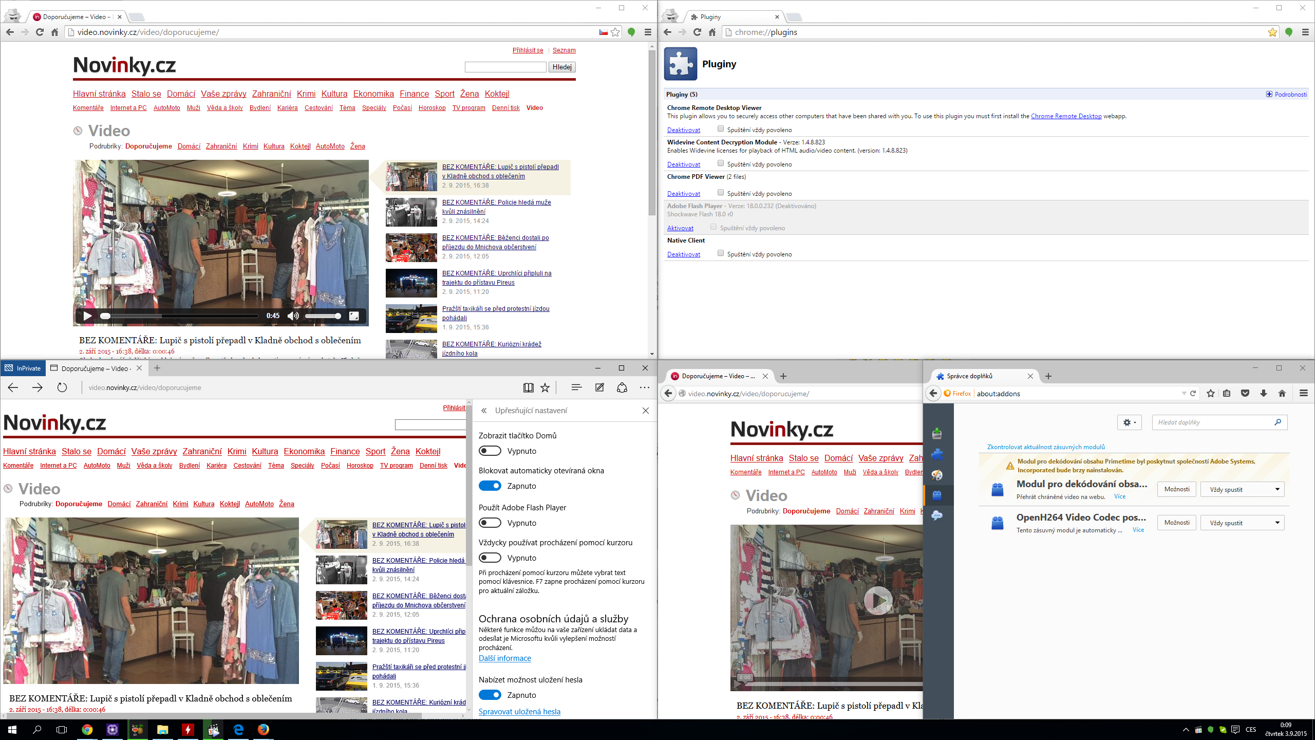 Zdravím potřeboval bych poradit jde mi o to že na novinkách a teď jsem zjistil že i na prima.play mi nejdou spustit videa, ale youtube,vk,liveleak, tam mi videa fungují nevíte někdo v čem bude problém? Ještě bych dodal že ani v exploru mi to nejede, předem děkuji za rady.