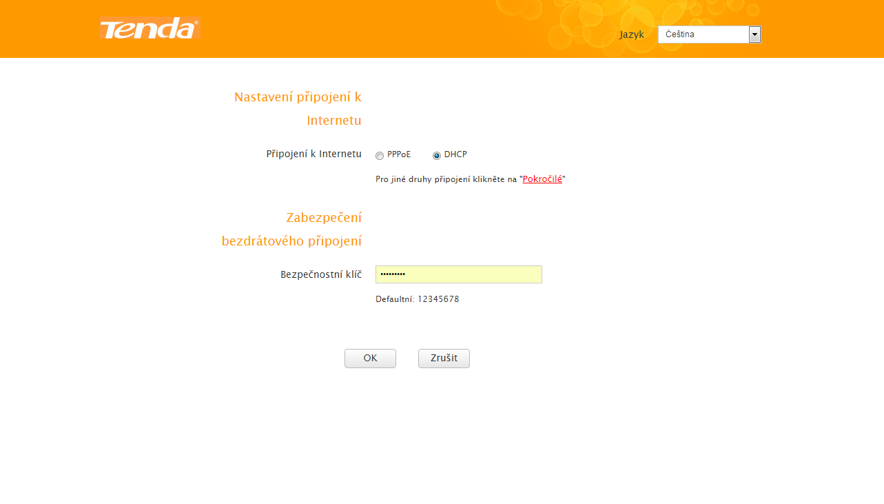 a vyhodilo mi to stránku kde bylo : nastavení připojení k internetu PPPoE nebo DHCP