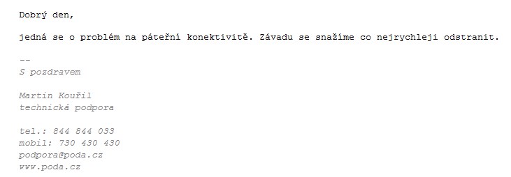 odpověď od podpory Poda a.s.