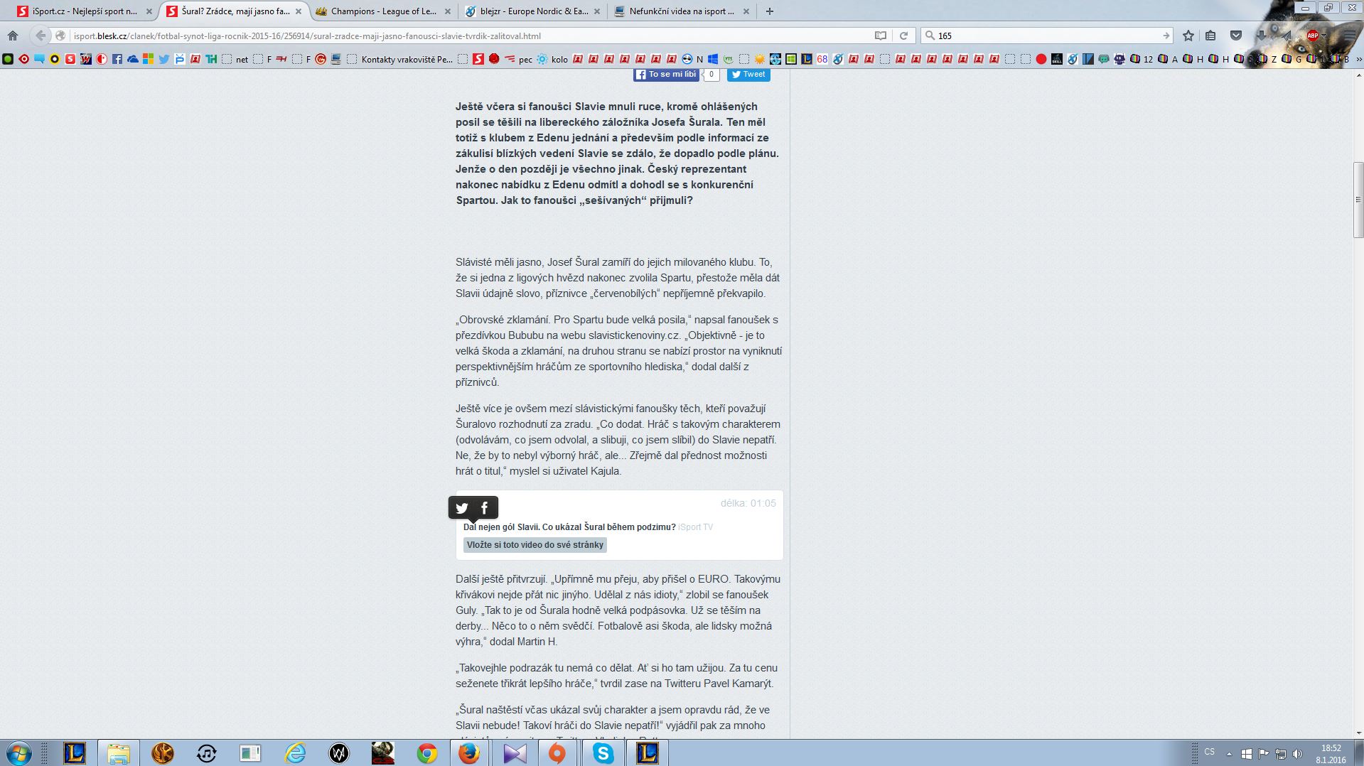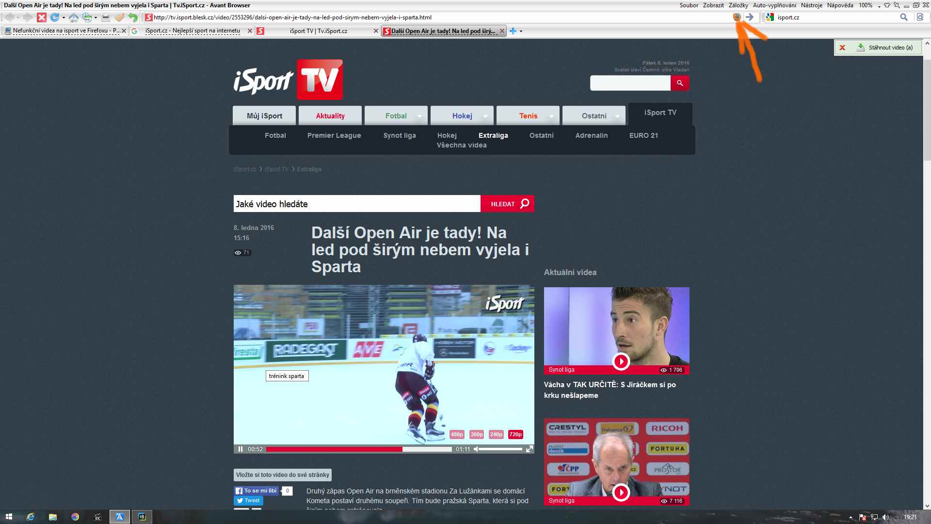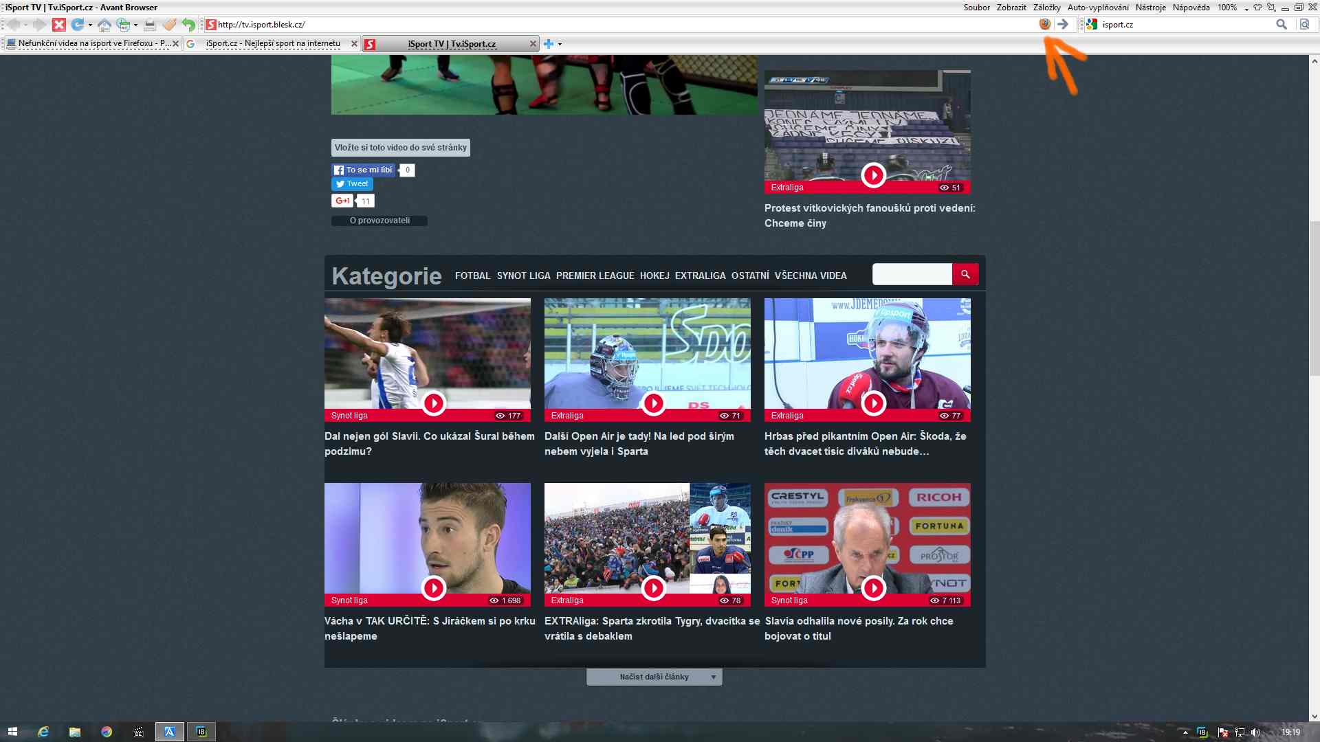 Ahoj už řadu měsíců pozoruji, že mi nejdou vůbec videa na sportovním portále isport.cz video tam vubec neni videt.. jen script "vlozit na stranky" nejde mi to ve firefoxu na domácím PC, ale ani na firefoxu na firemním PC což je zvláštní.. IE je přehrává.. Chrome na domácím PC taktéž..