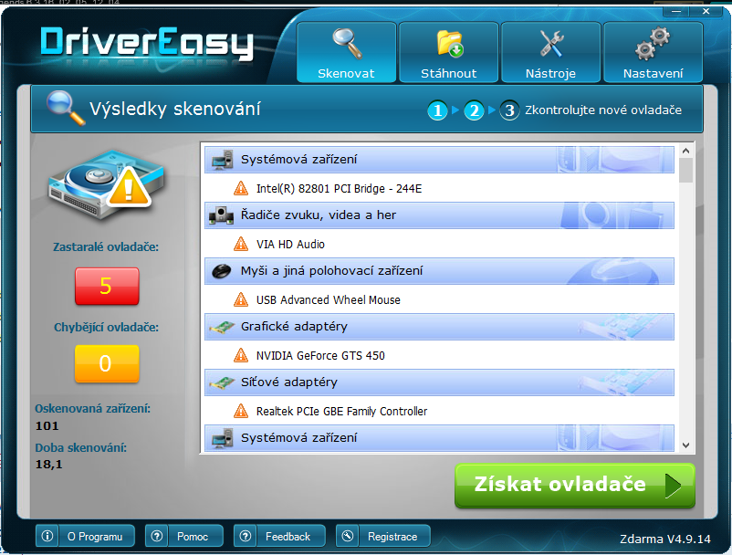 Napísal som sprav sken, klikni na "Získať ovládače".