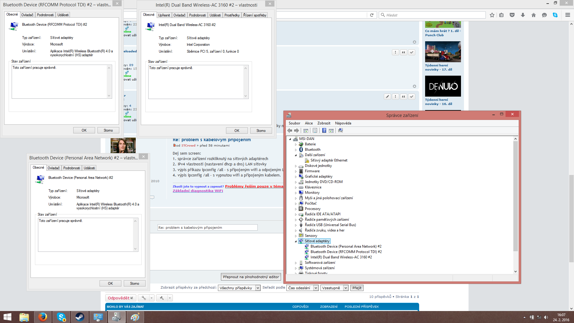 Dobrý den, mám takový problém, že když strčím kabel od internetu do notebooku tak mi to vůbec nereaguje...dřív se to okamžitě načetlo a jel jsem přes kabel, ale najednou to nějak nechce vůbec brát a jede mi jen Wi-Fi...(jelikož mám herní notebook tak mi ještě k tomu Wi-Fina vypadává...).