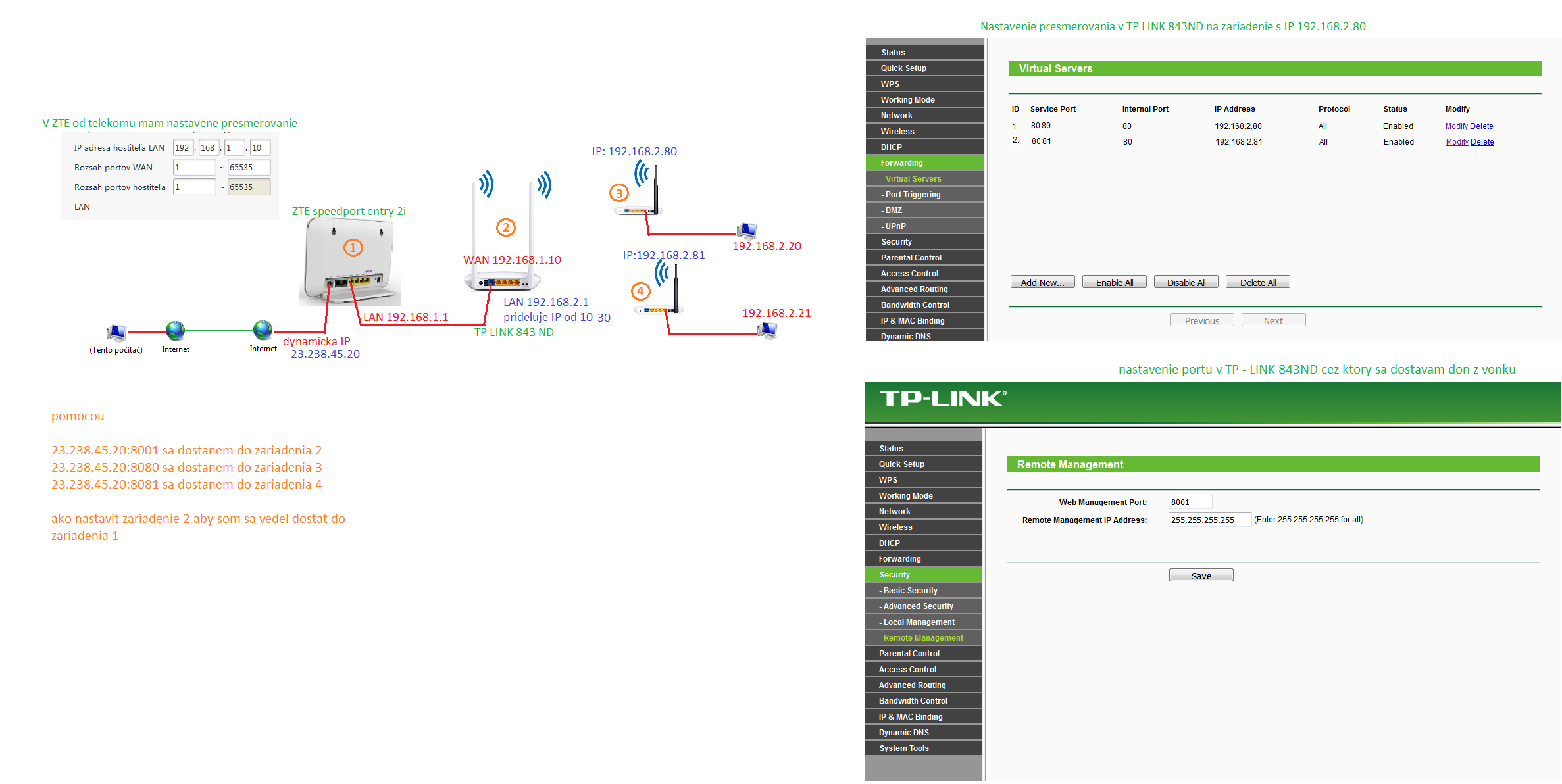 Vsetko funguje ked zadam dinamicku IP zo ZTE s portom pre TP Link843ND (napr: 23.238.45.20:8001) dostanem sa do TP Linku.