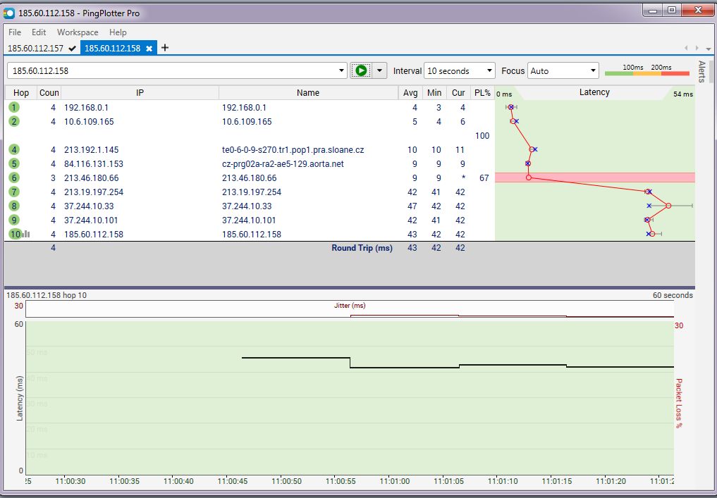 screen z programu pingplotter
