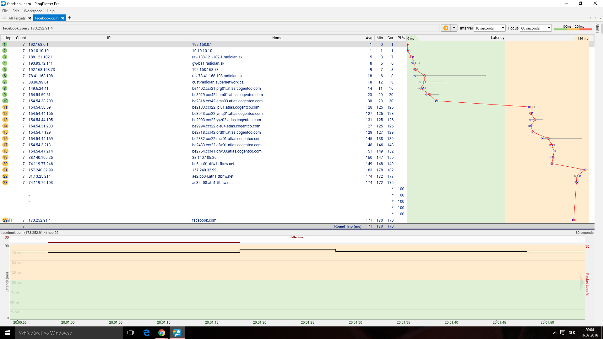No a dál se to přehazuje ze serveru na server, až mezi be2816... a be2183... je skluz. Screen klidně pošli tvému providerovi, ale on se bude muset obrátit zase na svého providera se žádostí o nápravu. Ono je taky možné, že něco někde odešlo a proto to tak koluje po různých serverech.