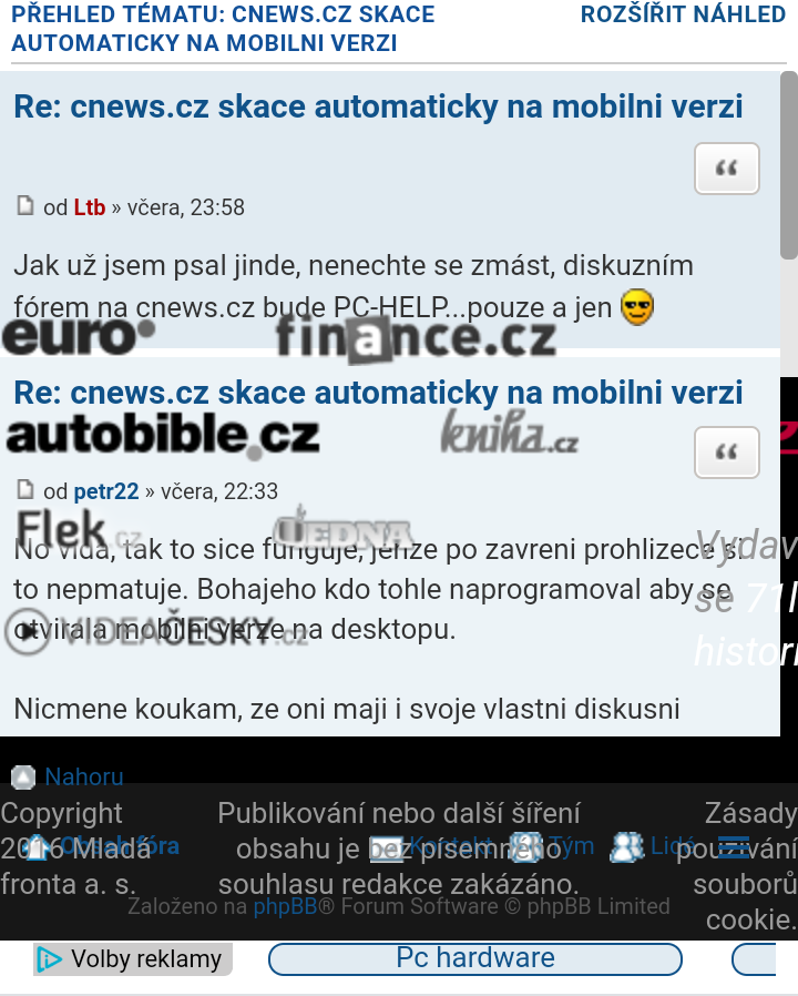 Nicmene koukam, ze oni maji i svoje vlastni diskusni forum, ktere by se nedalo zrovna oznacit za hojne navstevovane. A to se ovtevre korektne v desktop verzi, zajimave.
