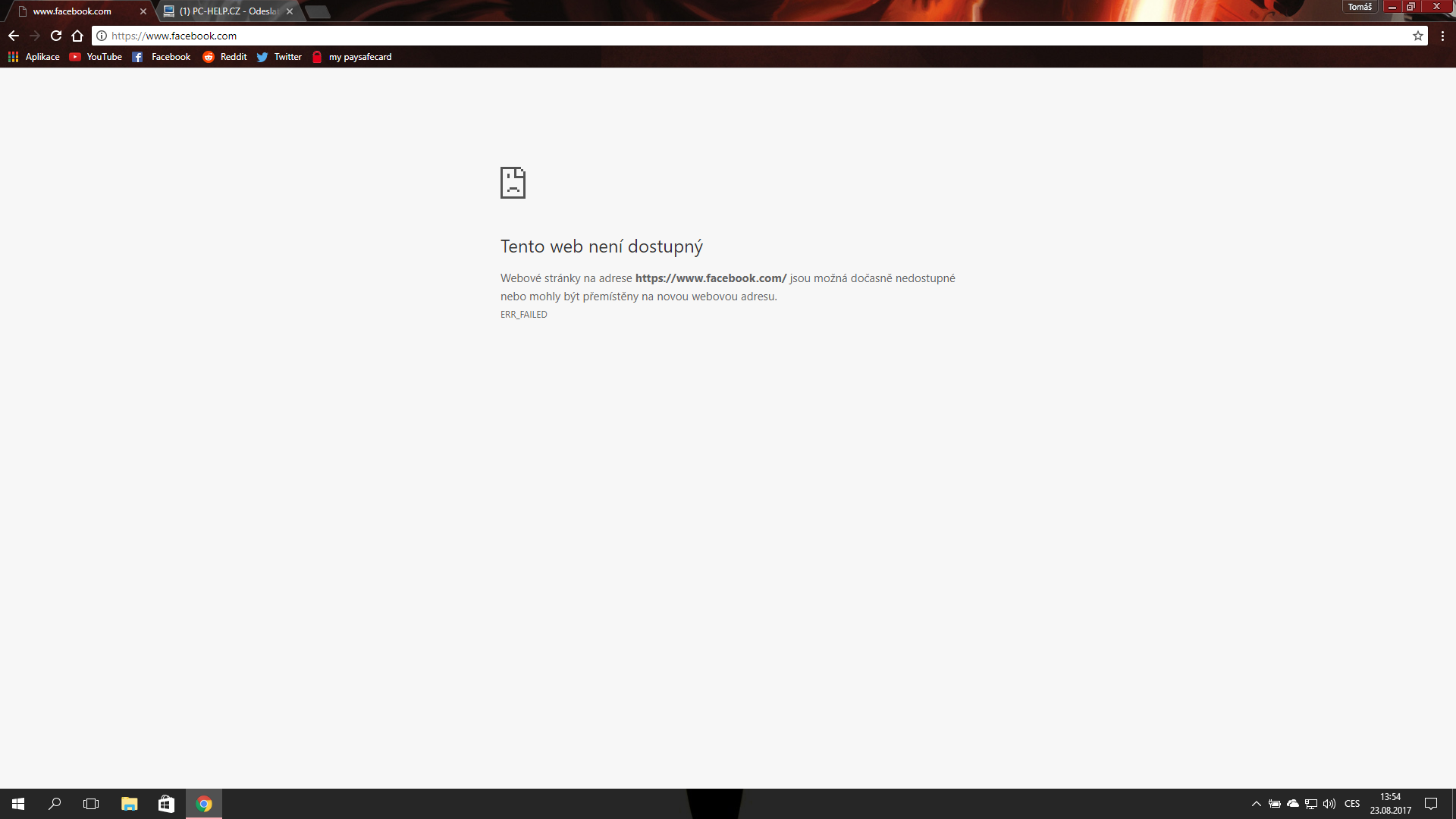 Když chci zapnout facebook tak mi vyskočí akorát: Tento web není dostupný