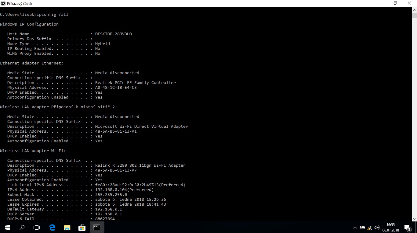 Zkus změnit u Wireless LAN adapter Wi-Fi ve vlastnostech protokolu IPv4 DNS na 8.8.8.8 a 8.8.4.4