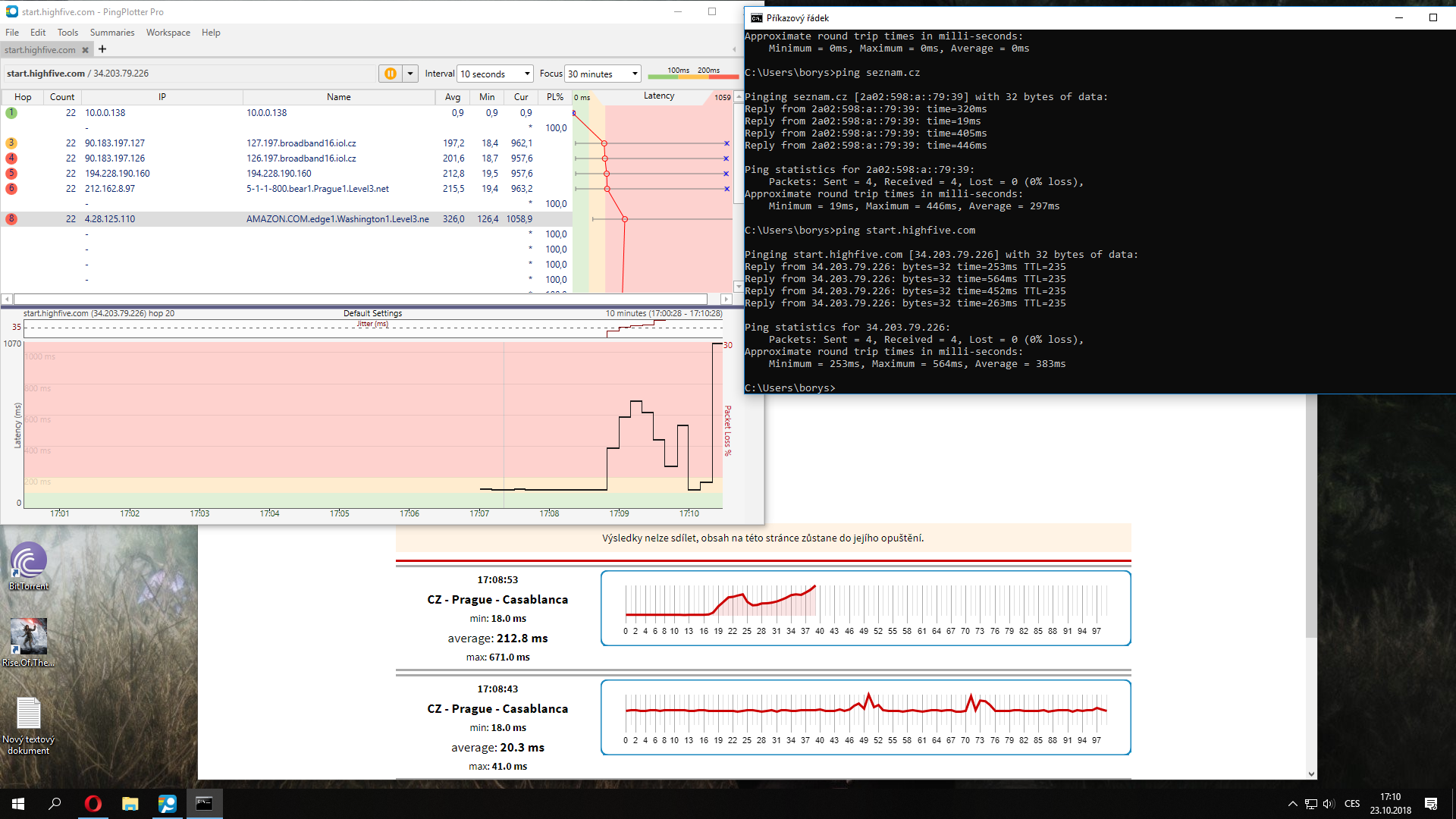 Zkoušel jsem udělat tracert v cmd zde je výsledek