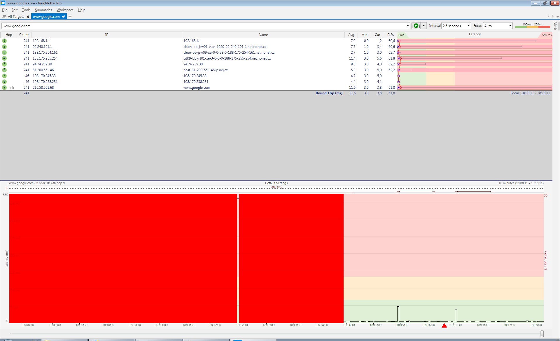 - screen pingplotter při výpadku
